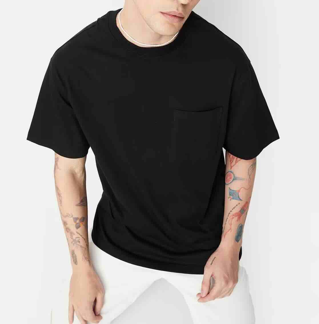Mens Crew Neck T-Shirt With Pocket. Short Sleeve.
