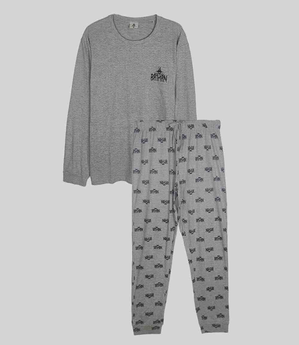 Long-sleeve crew-neck tee with a playful front graphic, paired with matching pants in an all-over print