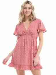 Women’s Printed Woven Mini Dress. Flutter Short Sleeve