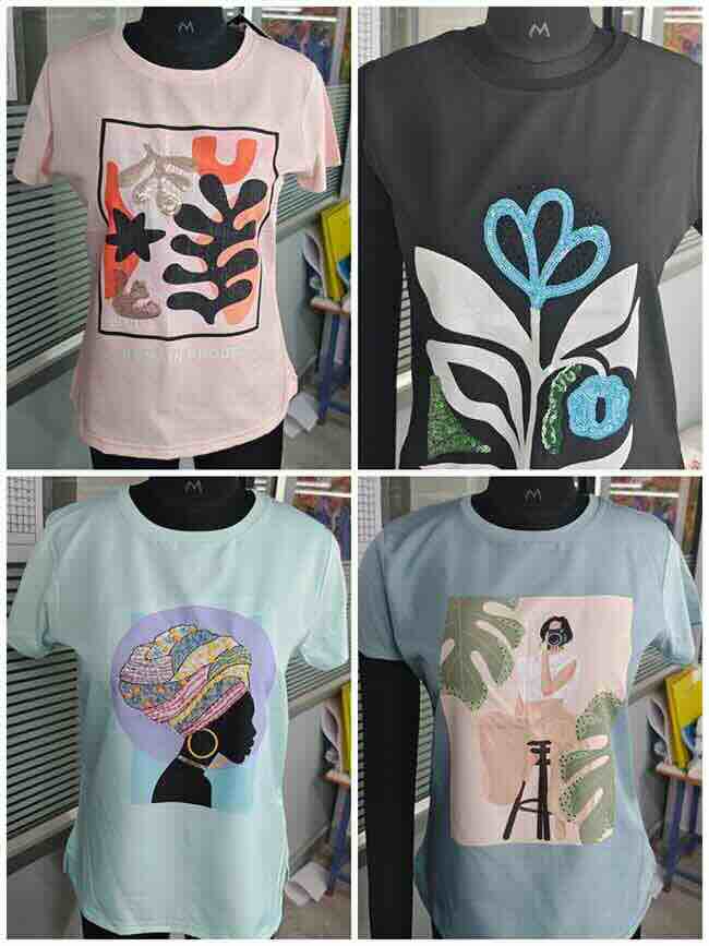 Ladies Printed T-Shirts Assorted. Short Sleeve and Long Sleeve. Crew Neck, Boat Neck and V Neck. View Ladies printed t shirts,