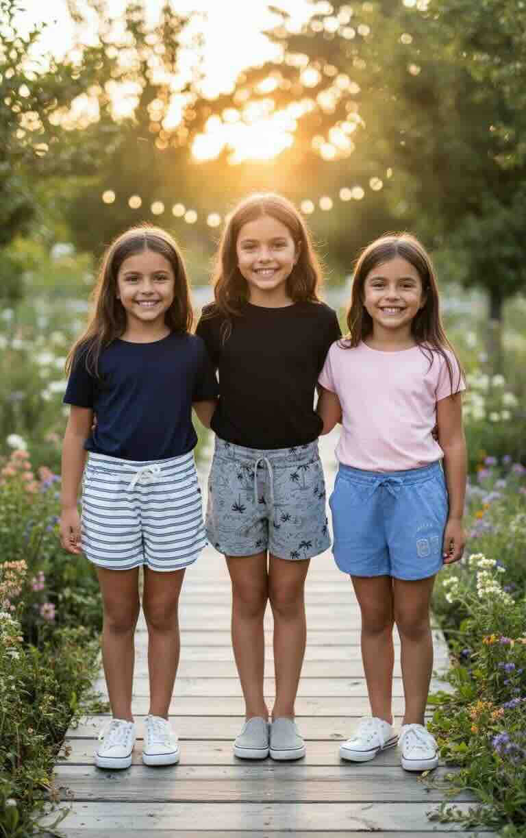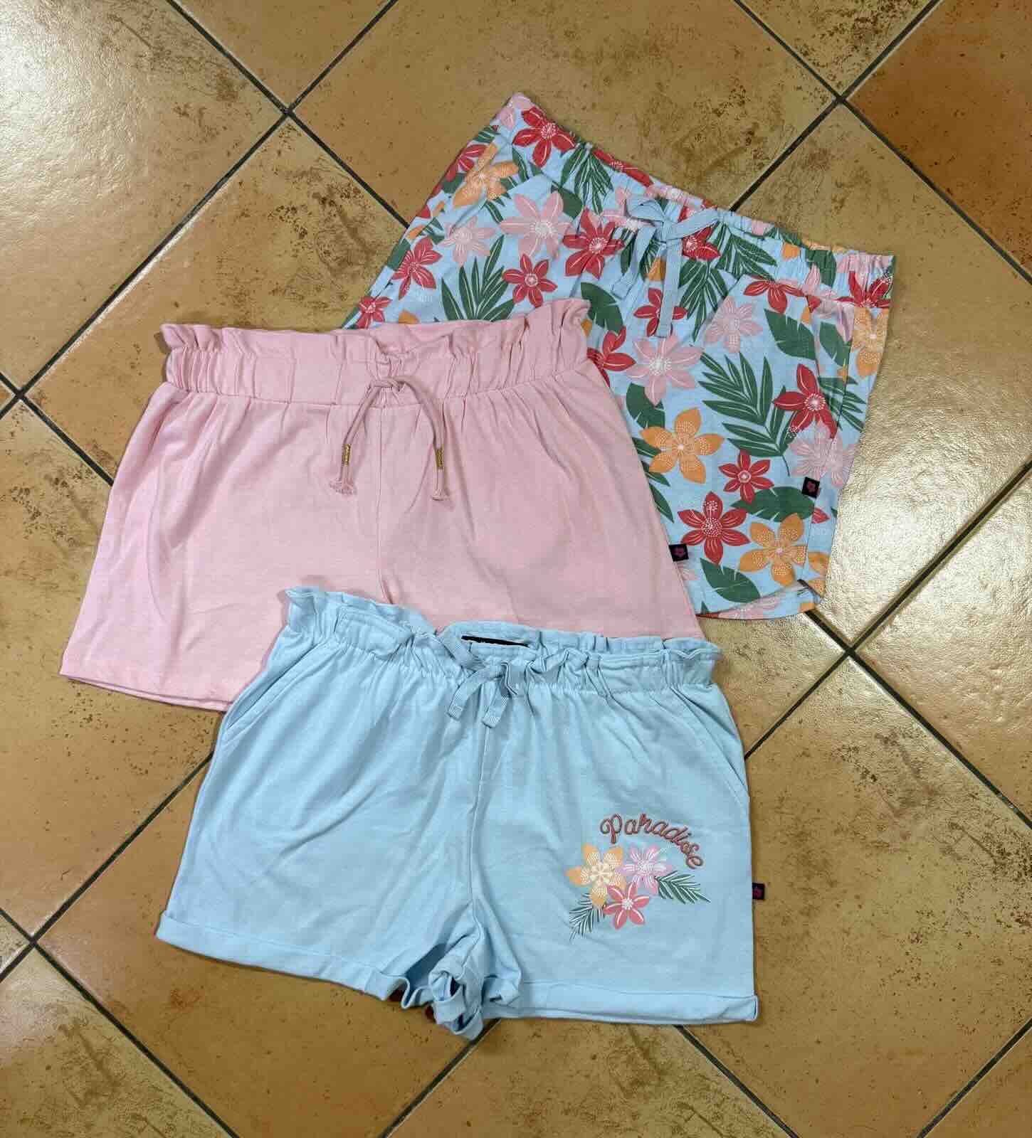 Girls 3 Pack Knit Shorts. Printed. Elastic Waist.